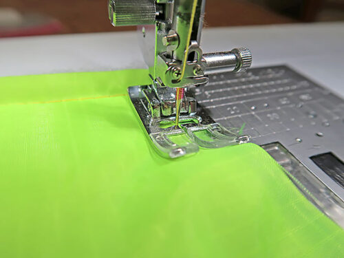 - Turn the bag wrong side out to allow it to more easily slip under the presser foot and to keep the top edge flat and smooth.