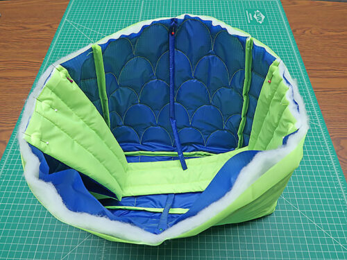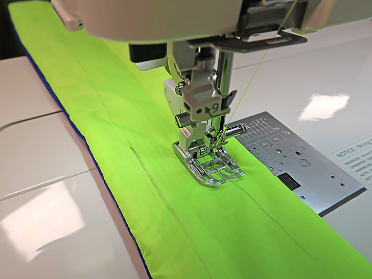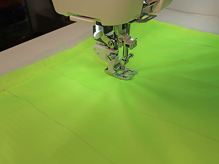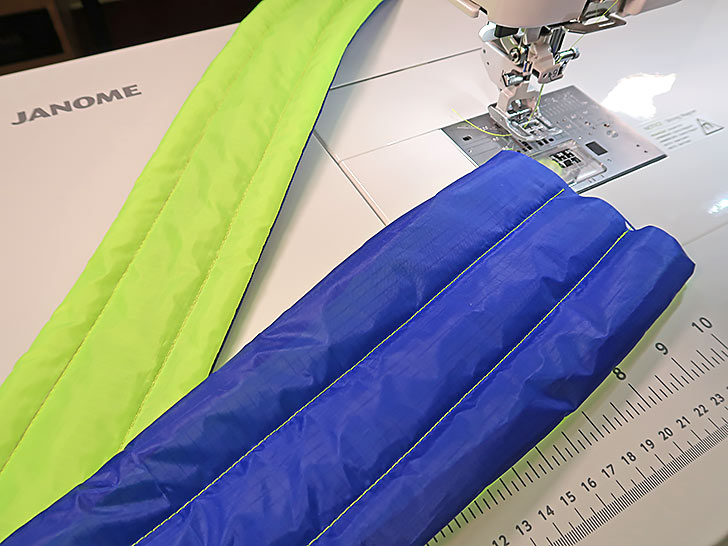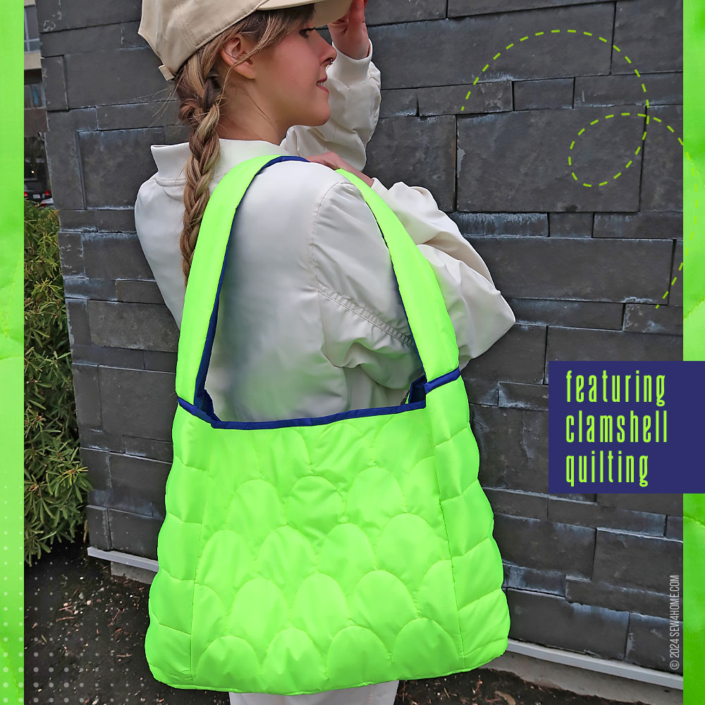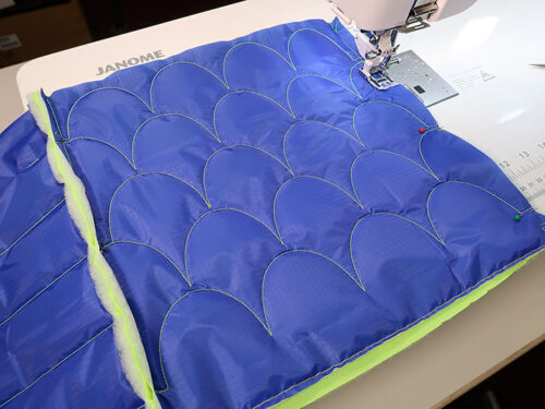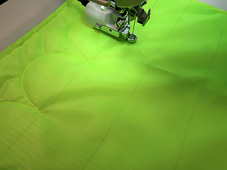 Top trends aside, this was also an excellent opportunity to use the Janome Continental M8 Professional with its A.S.R.™ Accurate Stitch Regulator. With the bag’s lofty layers and detailed clamshell pattern, as well as the fact that the fabric is ripstop (known to be a bit of a difficult, slippery substrate), we were confident the project could be a great showcase for the A.S.R.™ system. And we were right.