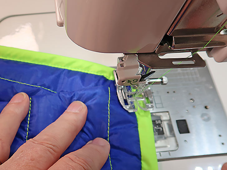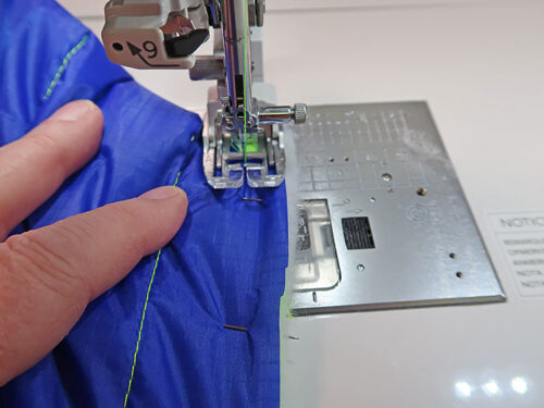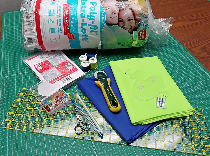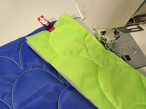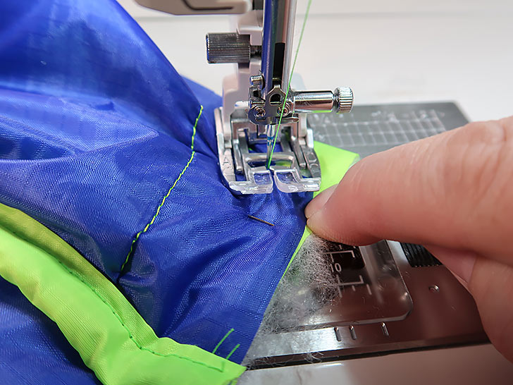 NOTE: For this project, it is important to have some type of dual feed set-up for your machine. You could attempt it with a standard presser foot and regular feed dogs, but the slippery nature of the ripstop and the loftiness of the batting will likely make that option rather challenging.
