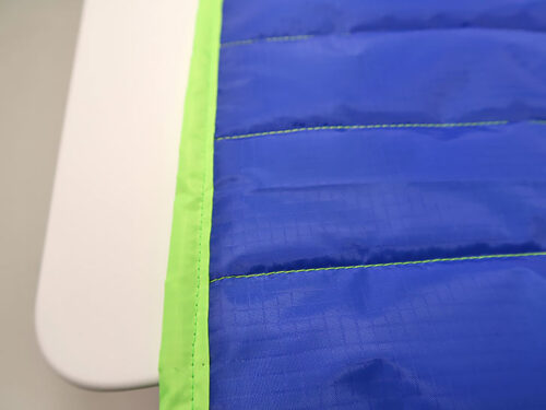 - Also as mentioned above, we threaded our machine with 40wt polyester embroidery thread, using thread to match the exterior ripstop in both the top and bobbin.