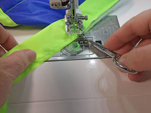 - We recommend starting at the center back and stitching into each corner from there. At the corners, if need be, you can snip into the binding strip for an easier turn.