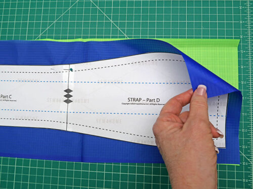 - Place the assembled strap pattern on top and pin in place.