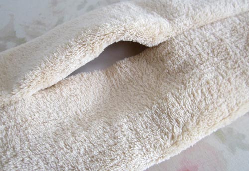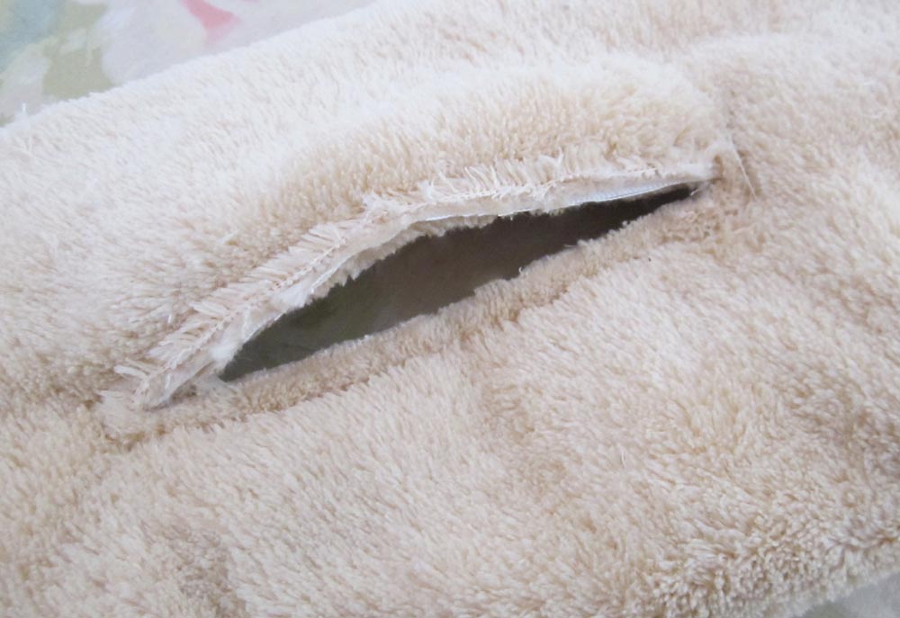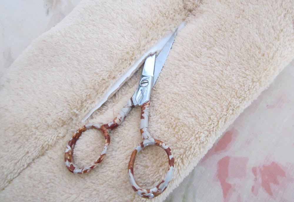 - Flip the scarf back over and carefully cut between the stitch lines – again, just like a big buttonhole. When cutting faux fur, you slide your scissors under the nap and cut just the backing. If you are new to the technique, don’t forget to check out our full Sewing with Faux Fur tutorial.