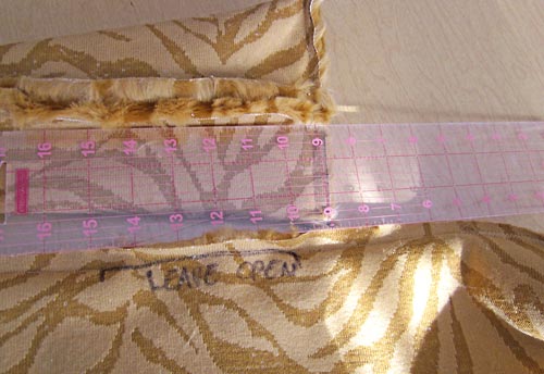 - Our measurement was 9″. Add 1″ for a seam allowance. We are only using a ¼” seam allowance, but erred on the side of just a bit of extra room by adding a full inch. We marked and cut out two 6″ x 10″ rectangles. Remember, you have to mark and cut from the back of the fur.