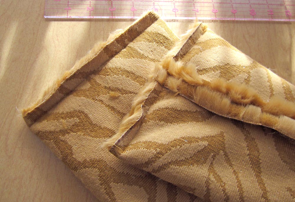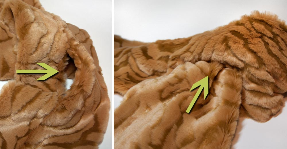 Once again, don’t forget to check out our Sewing with Faux Fur article for pinning, cutting and sewing tips. It is especially important that you cut your cuffs with the nap going the same direction on both pieces, otherwise they will appear to be two different colors.