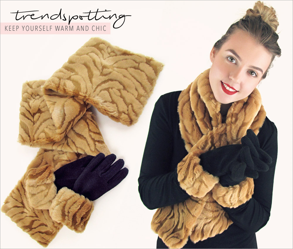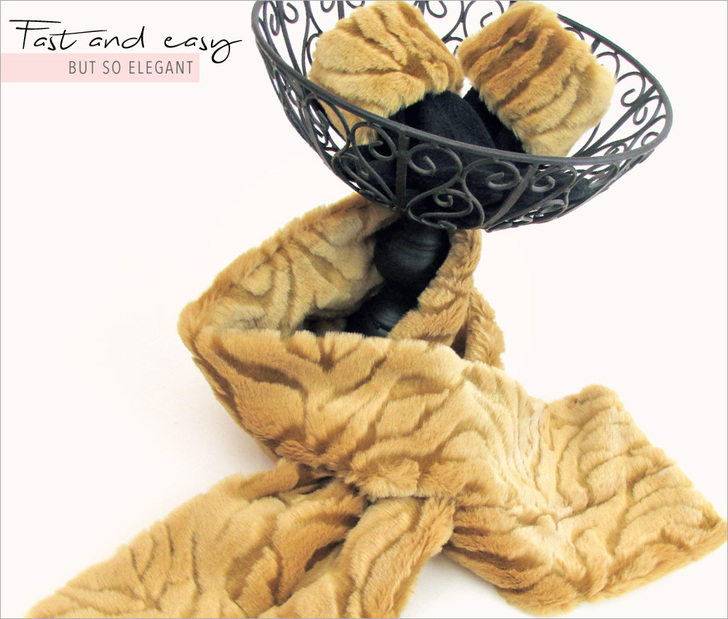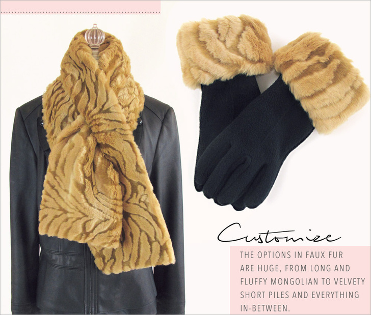 Walk into any store selling clothing or accessories this season, and right there in the front display you will see it: faux fur! It is everywhere, especially these adorable sets of faux fur scarves and gloves. Super trendy: check! Super easy: double check! With a little bit of fur and a little bit of time, you can create beautiful matching scarves and cuffed gloves for yourself and anyone else you know who needs to bundle up.