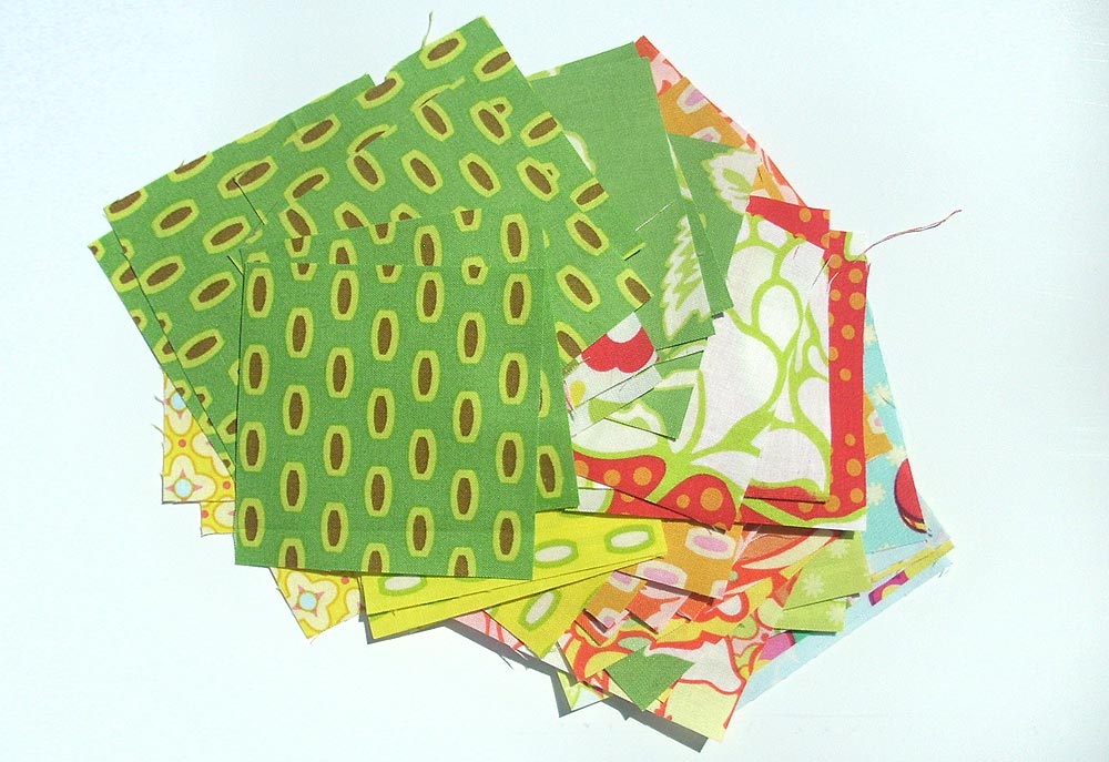 - Cut your selected scraps into sixteen 3½” x 3½” squares.
