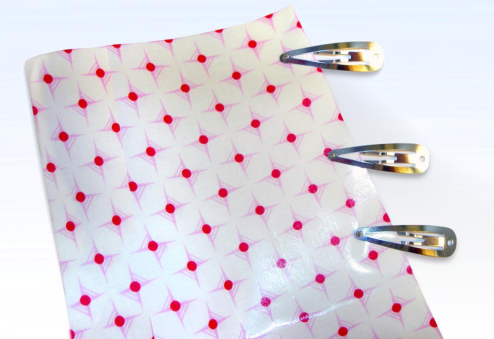 We’ve also used one of the popular cotton laminates, such as Heather Bailey’s Nicey Jane cotton laminate, which we chose for our Toddler’s Art Project Apron. Though different from PUL, because it’s bonded to a natural cotton fabric (it is not waterproof – just water resistant), several of the pinning and sewing tips are applicable to this type of fabric as well.
