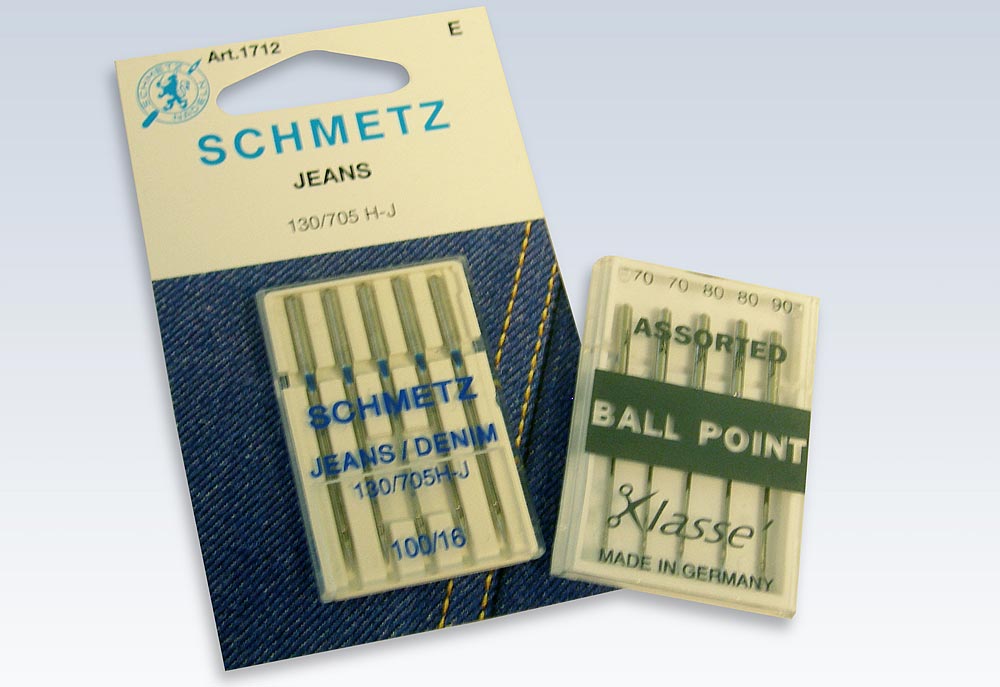 The thickness of laminate you are using will determine the type of needle to use. A denim or jeans needle is a good choice for thicker laminates in a No. 14 to No. 16. For the thinner laminates, a ball point needle is a good choice in a No. 9 or No. 11. Always test first on a scrap.