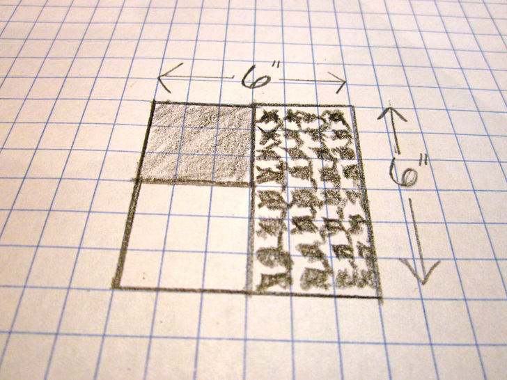 - To start our design, we will work with a square. We determined in Part 2, we wanted our finished square to be 3″ x 3″. For our drawing, we decided to make each square on our grid paper equal to 1″. Our 3″ square looks like this on our graph paper.