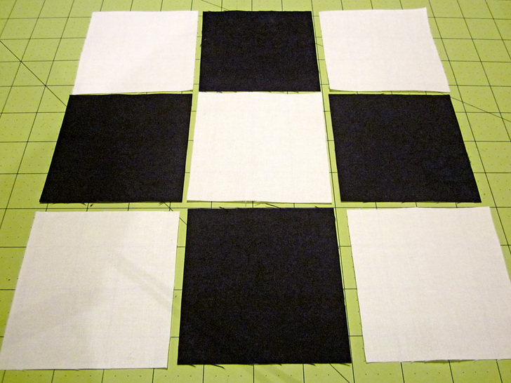 NOTE: We used only black and white fabric in our examples; you can use three or four colors, add in a print, etc. This is that fun, “playing-with-fabric” part we talked about. - Four patch – this block speaks for itself.