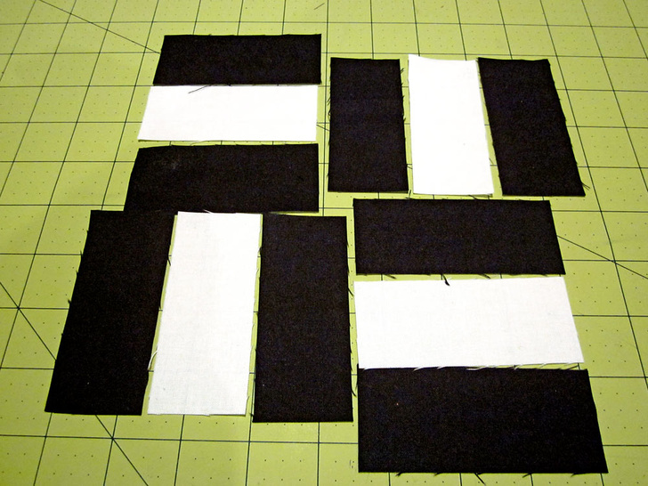 - Rail Fence – our example below does not do this block justice because it’s not sewn together. But, you get the idea of how alternating rectangles can create a very interesting pattern.