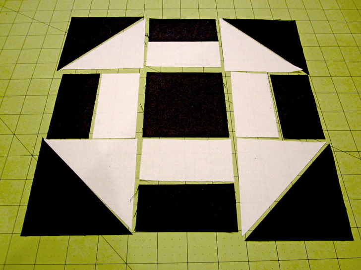 The most interesting quilt blocks use a combination of the basic shapes. In addition, each block is often rotated to create a design-within-a-design across a quilt top.