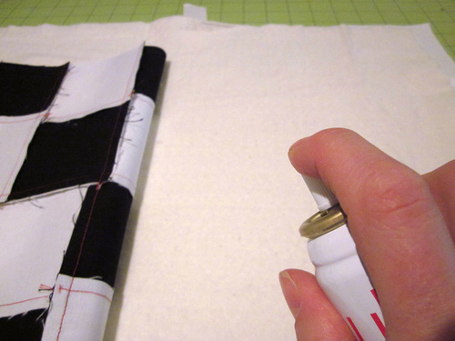 NOTE: Do not use just any type of temporary spray adhesive; you must use one designed for fabric. The wrong type of adhesive can seriously gum up the needle on your sewing machine and ruin your quilt!