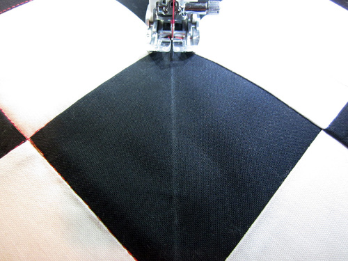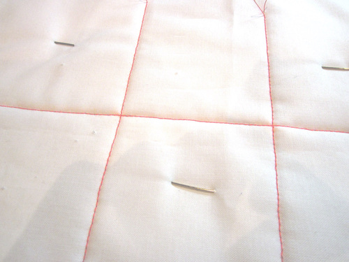 - Draw a line to stitch along. This is particularly helpful if quilting on the diagonal.