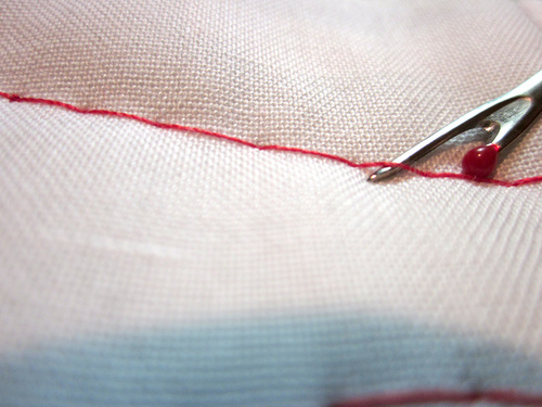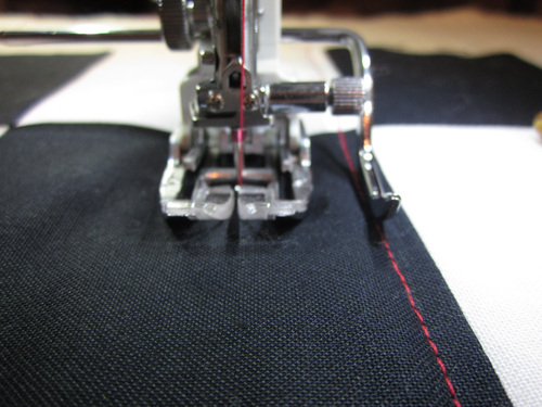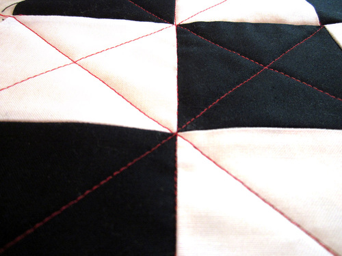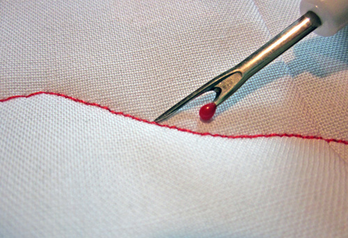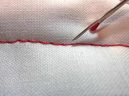 - We used red thread so you can clearly see how the stitching runs in the ditch.