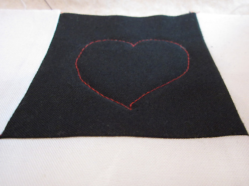 - Using the same free motion technique described above, follow the marked pattern until it’s complete. Remember to think ahead and look where you need to go next. Don’t worry if you don’t follow the lines exactly. We didn’t, and we have a fun, little wonky heart that we love! That’s the creativity in free motion quilting.