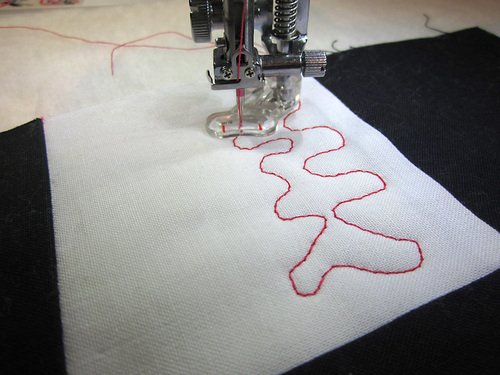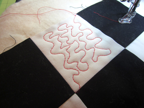 - This is a very versatile form of free motion quilting. Use it within a specific area, like we did inside the white squares on our quilt below. Or you could make it a filler design in the background fabric of your quilt. Or, accentuate a focal point, as we did below around our previously quilted heart design.
