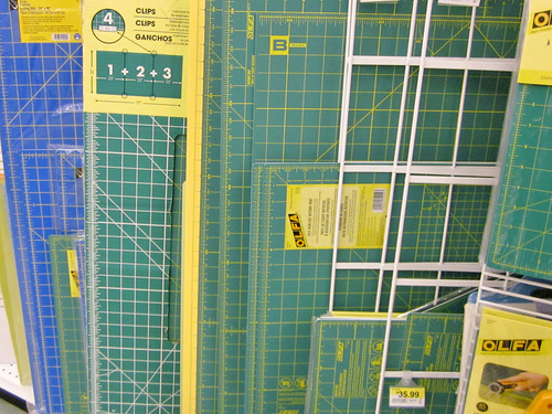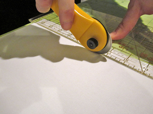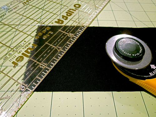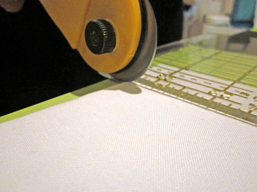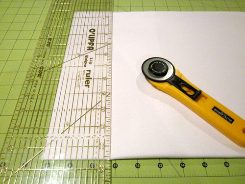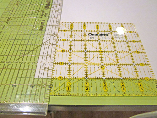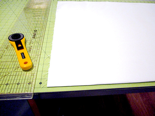 - Set up your cutting area with a cutting mat, ruler(s) and rotary cutter all at the ready.