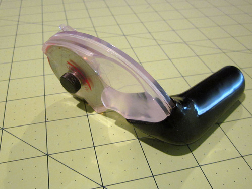 - Some people like to place their index finger along the top of the cutter. On our particular rotary cutter there’s even an indentation molded into the plastic for your finger.