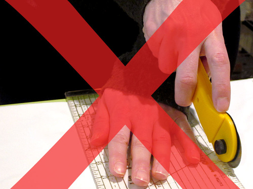 - Sometimes you’re so focused on cutting the fabric, you don’t realize your finger has wandered off the ruler. Similar to looking over your shoulder before merging onto the highway, always check your hand position on the ruler before you start to cut.