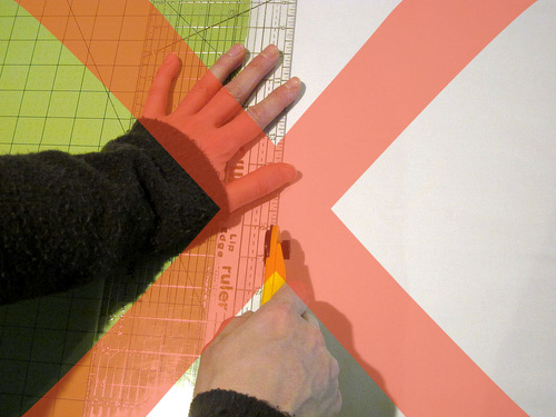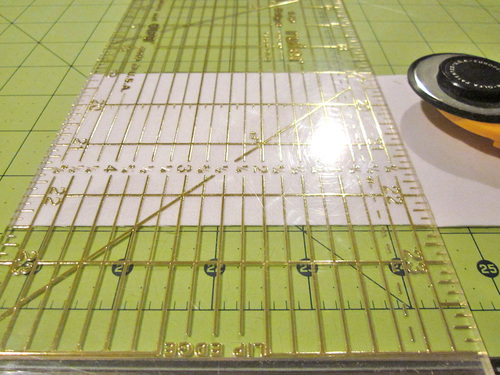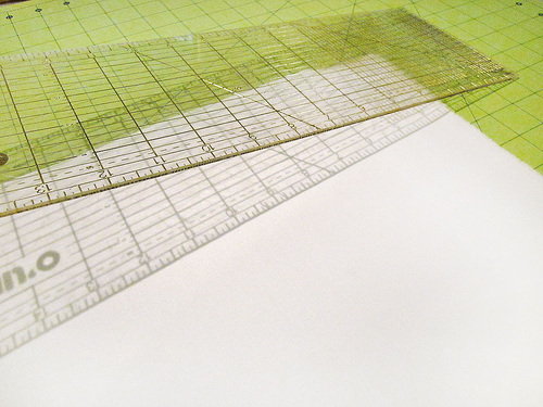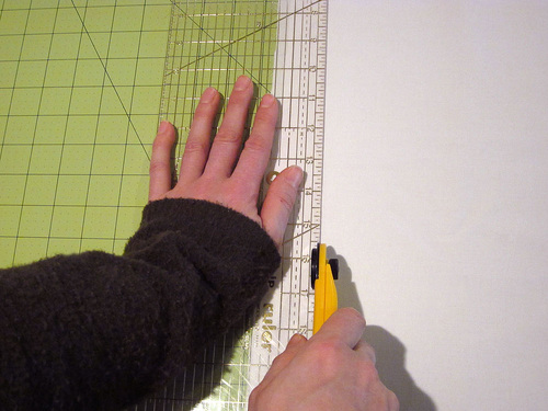 - Leaving the ruler in position, you are now ready to make the first cut.