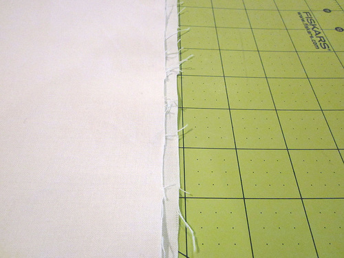 - Place the ruler over the selvedges end (ie. not the folded end) by approximately ½” -¾” (depending on the depth of the selvedge).