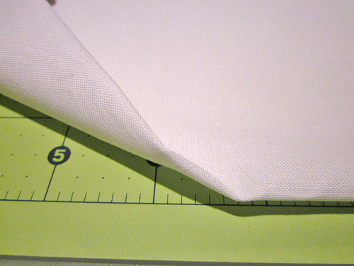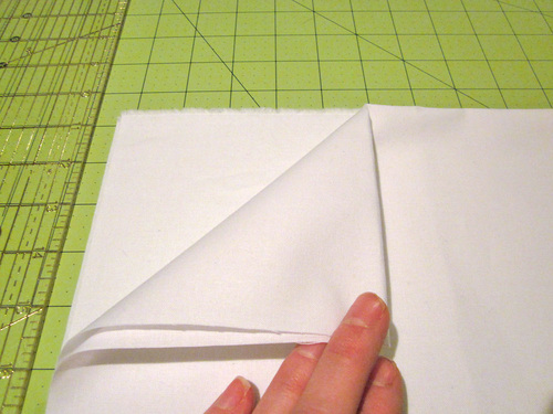 - Fold the fabric in half along the lengthwise grain, matching selvedge to selvedge, the same as above.