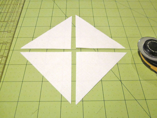 - To cut four triangles from a square, simply cut the square along both diagonals. These are known as quarter square triangles.