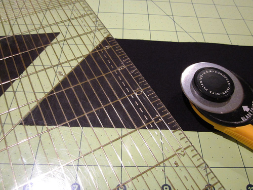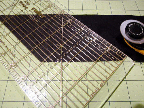 - Another way to cut triangles and diamonds from fabric strips is to use the angle markings on your ruler.
