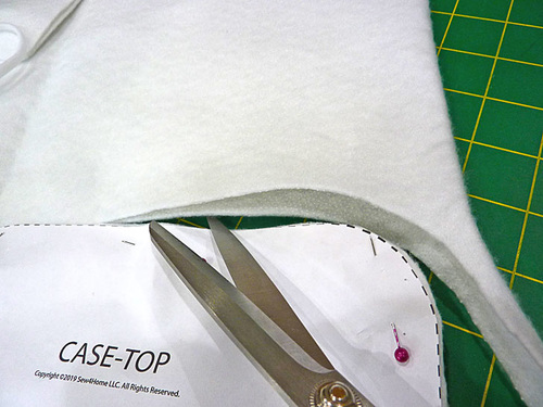 - From the fabric for the exterior upper panels (the Field Folly in our sample), use the Case-Top pattern to cut TWO.