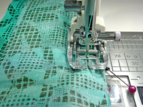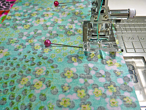 - Make sure the machine is still threaded with thread to best match the exterior in the top and to best match the lining in the bobbin, and that the stitch is still lengthened to match what you did above.
