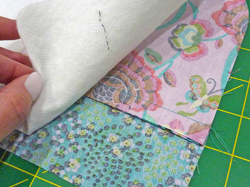 - Stitch across through all three layers, using a ¼” seam allowance.