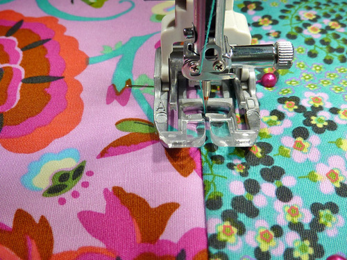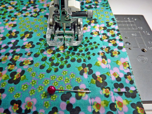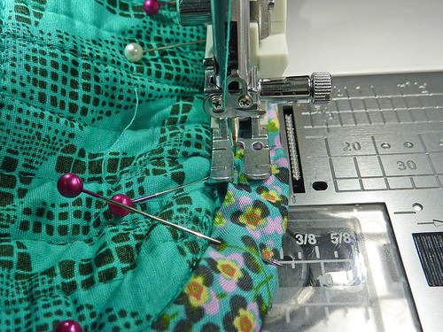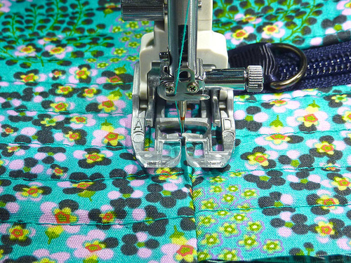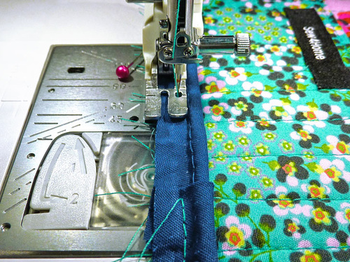 - This side will be a bit more challenging to wrangle under the presser foot because you no longer have an open side. However, by making sure the zipper is all the way open and working to flatten the layers, you should be able to go all the way around without a problem. As with all things that may present a challenge, go slowly and stop as needed – with your needle in the down position – to adjust the layers as needed.