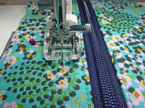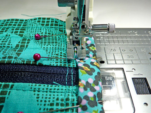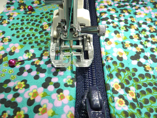 - Stitch through all three layers along this second side of the zipper, again using a ¼” seam.