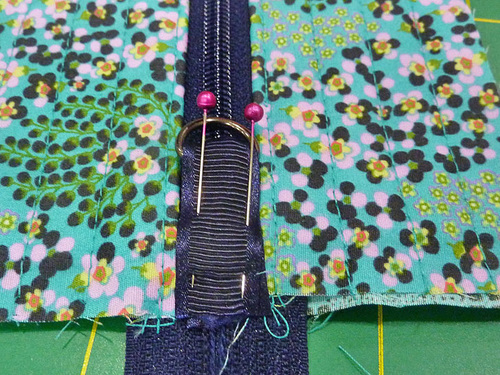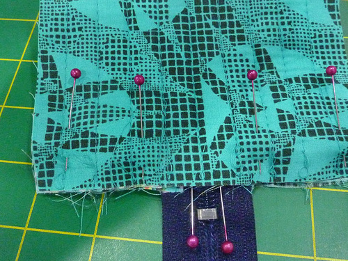 - Lightly pin the zipper in place.