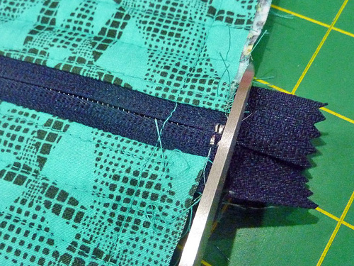 - If you used a longer zipper or there is any excess zipper tape extending beyond the fabric, trim it away so all edges are flush.