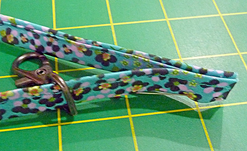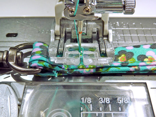 - Stitch across the strip, through all the layers, running the seam as close to the swivel hook as possible.