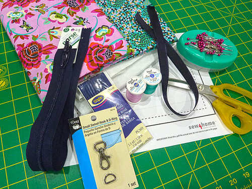 - ONE 18” purse zipper in a color to match the piping; we used a Coats Purse Zipper in Navy