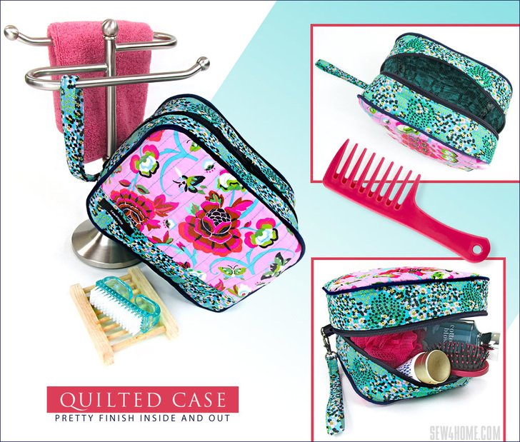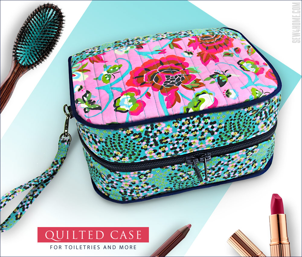 Zip open wide and drop your stuff inside! This versatile case can hold toiletries and more. Quilted layers give it a flexible finish so the sides can softly expand to fit items of all shapes and sizes. If you’ve always been a little intimidated by three-dimensional sewing, we encourage you to give this little case a try. It’s surprisingly straightforward, and we’ve included lots of helpful tips along the way.