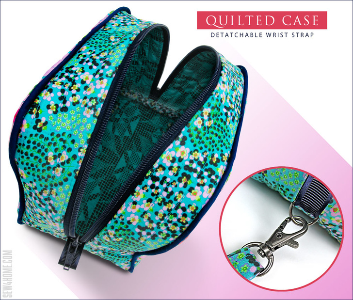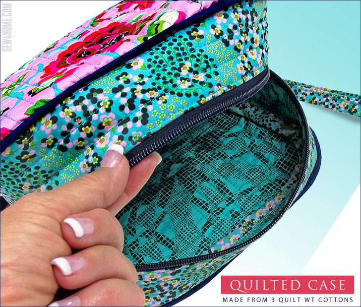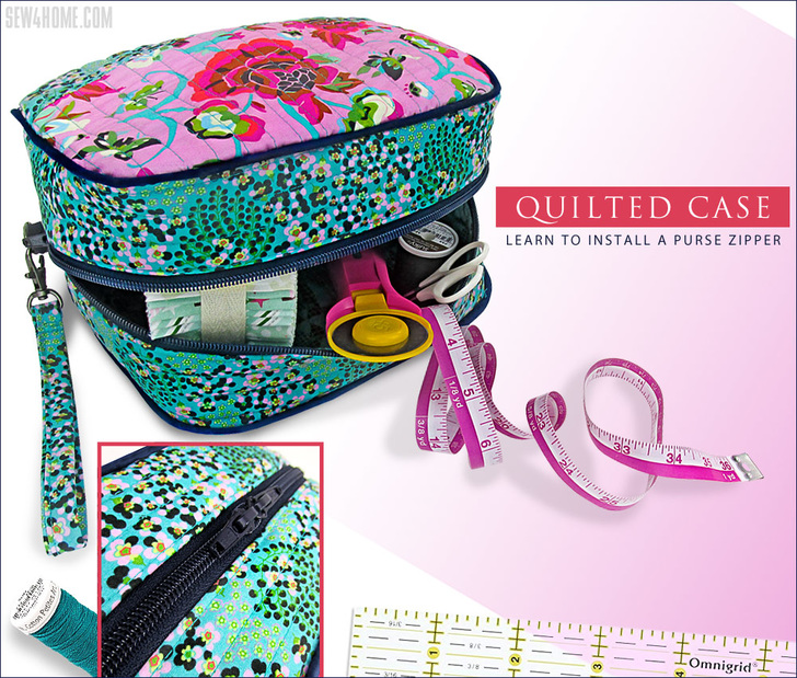 An 18’ purse zipper is recommended for the project. This type of zipper has two pulls that meet in the center so you can open and close the case in either direction. You’ll like our easy steps for inserting the zipper. We mention this, because three-dimensional sewing fears are usually second only to zipper fears, but with thorough instructions and lots of photos, you’ll move through the steps with ease.