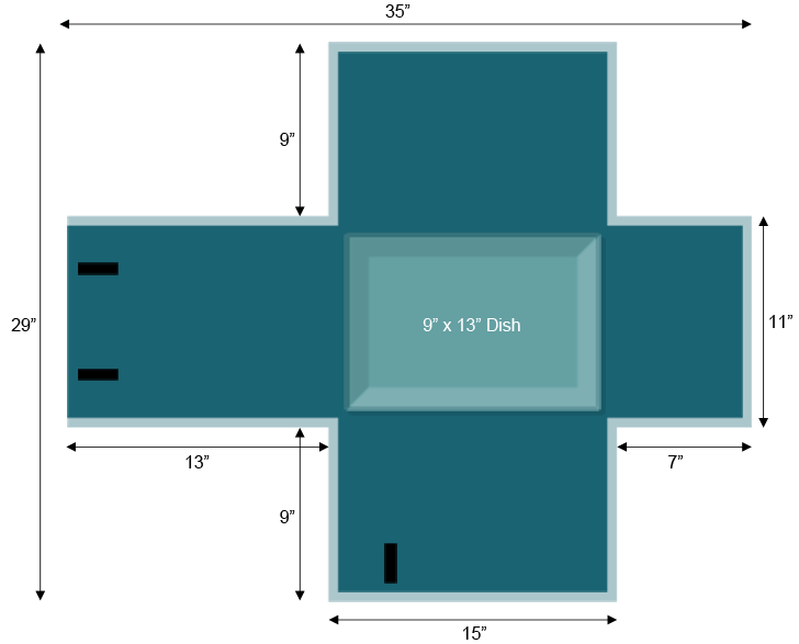 - When unfolded and laid flat, you should have a cross with two corners that are 9″ x 7″ and two corners that are 9″ x 13″.