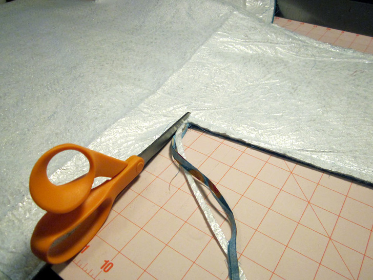- Repeat to cut matching corner notches from the 29″ x 35″ rectangle of thermal batting.