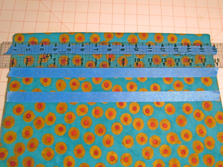 - Starting at one 15″ end of the cross, mark quilting lines at one inch intervals across the entire piece. You can draw in the lines with a fabric pen or pencil (make sure it is one that will wipe away or vanish with exposure to the air or the heat of an iron as you are working on the right side of the fabric). You could also use painter’s tape as guide lines (the favorite method of our seamstress for this project). Or, if you have a Walking foot with a Quilt Bar, you could use that to maintain an even distance during the stitching process.