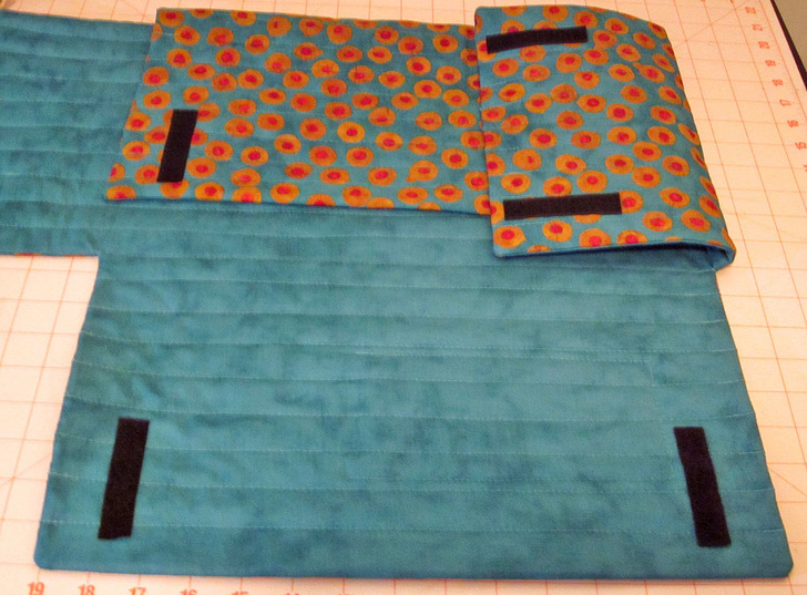 - Pin or fuse each piece of Velcro® in place, then edgestitch around all four sides.