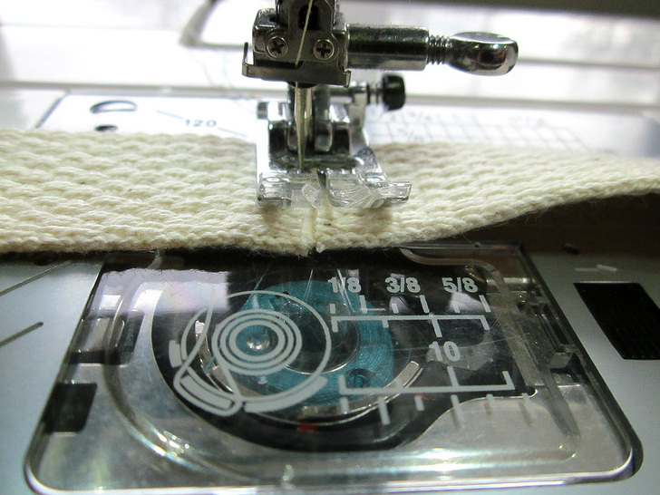 - Using a very tight zig zag stitch, attach the ends. We stitched across the joint three times.