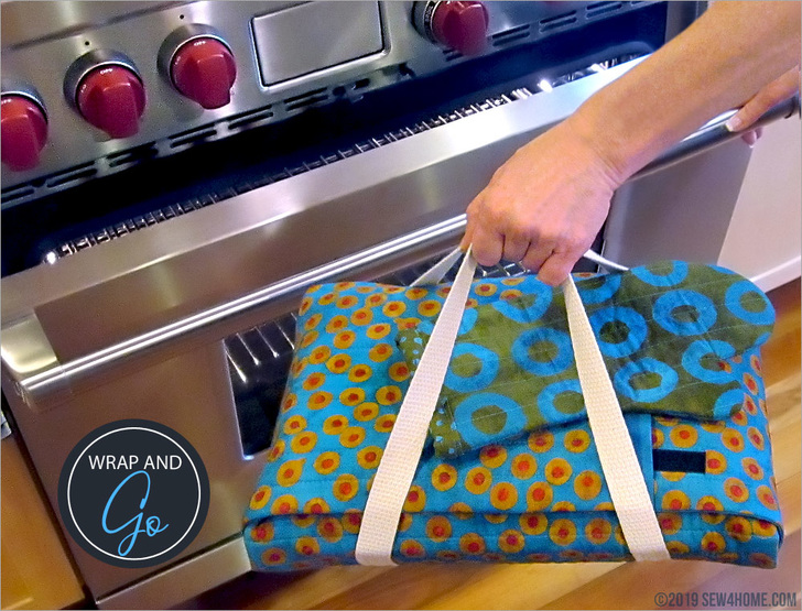 One of the best things about the holidays is the chance to get together with family and friends around a beautiful table filled with traditional dishes. Maybe you’ll be passing around Nana’s famous baked ham, Aunt Sheila’s warm apple-cranberry crisp, or your own delicious cornbread stuffing. If your culinary talents are on-the-go from gathering to gathering this season, you need a carrier that can keep your special dish toasty on the way there. Our wrap-it-up design includes a handy loop to clip a pot holder and an inside pocket for a serving utensil. This would make a wonderful present for the foodies on your gift list. Make the pretty carrier and the matching mitt or two, then wrap up a new baking pan you’ve filled with yummy homemade treats!