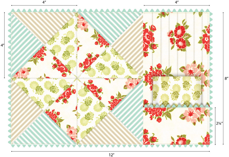 TWO 3¾” x 3¾” squares – cut each square along the diagonal to yield four triangles total - From the Fat Quarter or scrap for the napkin and four of the triangles, cut the following: