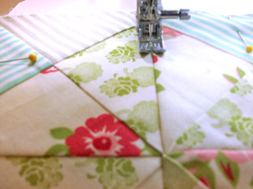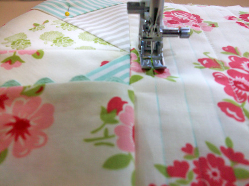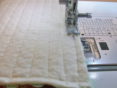 NOTE: Make sure your fabric pen or pencil will easily wipe away or vanish with exposure to the air or the heat of an iron; you are working on the right side of the fabric! - Stitch along the the drawn lines to complete the quilting.