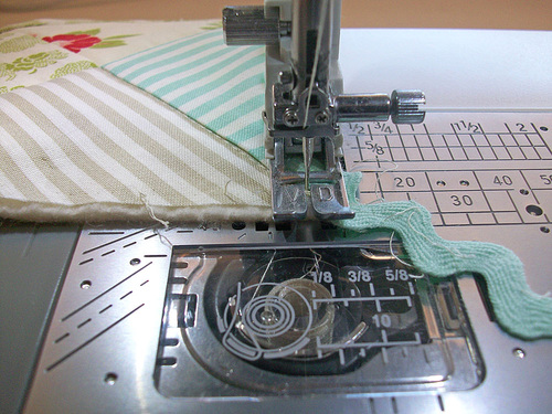 - Machine baste the rick rack in place, using a ¼” seam. If you positioned correctly as detailed above, this seam should run down the middle of the rick rack.